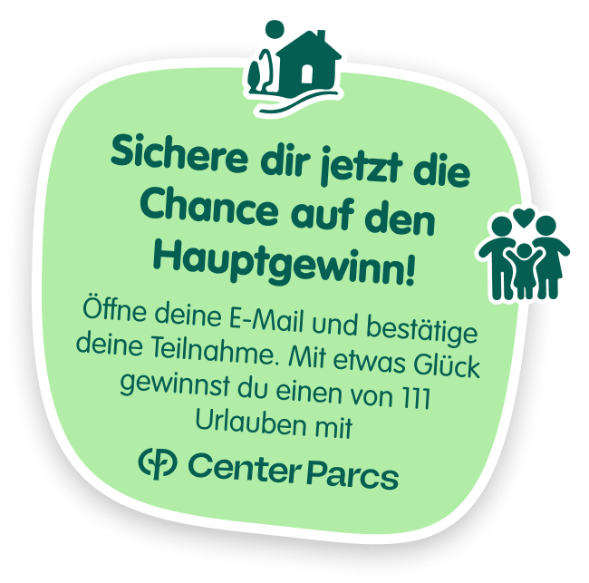 100 Wertgutscheine in Höhe von je 100 € bzw. 100 ₣, einlösbar als Rabatt auf eine Buchung bei Center Parcs.